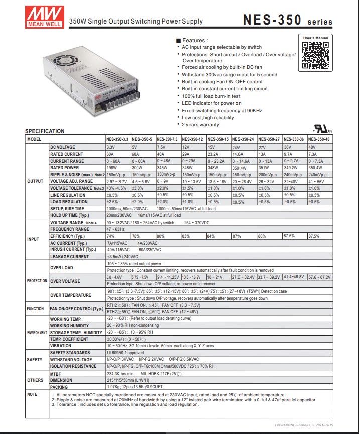 Equipped with a built-in cooling fan and integrated protections against short circuits, overloads, and overvoltage, the NES-350 series is engineered to handle demanding workloads while maintaining a long service life.